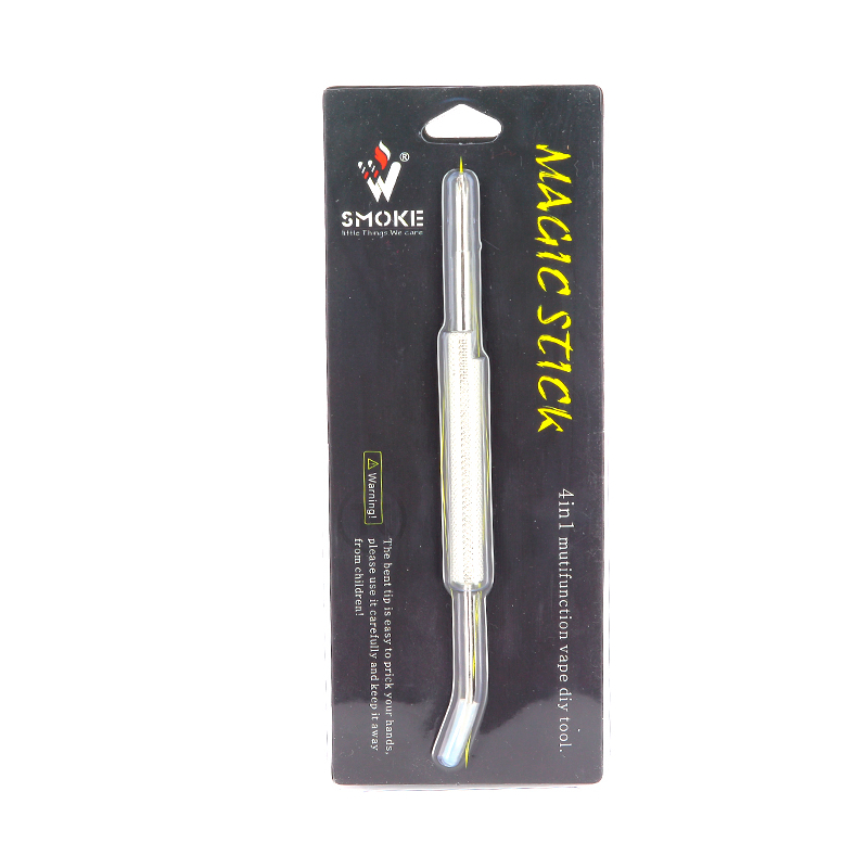 Sottile e salvaspazio, questo strumento fungerà da pinza curva, un cacciavite Phillips e un'asta di avvolgimento. È quindi possibile: creare una coil di 2,5 o 3 mm di diametro, avvitarla sul deck, lavorare la coil e posizionare il cotone.