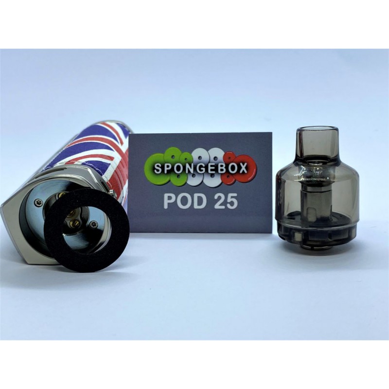 Spongebox POD 25 va posizionata nella base della Pod Mod, ed è stata progettata per avere uno spessore estremamente fine che non allenta la presa dei magneti e allo stesso tempo assorbe la fastidiosa condensa che si crea durante il funzionamento o eventuali perdite accidentali di liquido.
