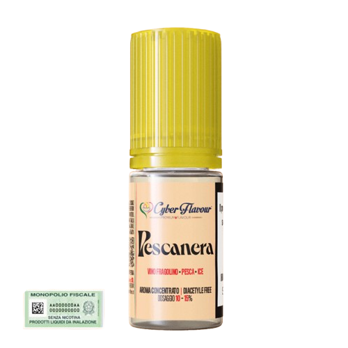 PESCANERA Aroma di Cyber Flavour è un aroma Fruttato e fresco. Un aroma al sapore di succoso Pesca, Vino Fragolino e rinfrescante Ice.