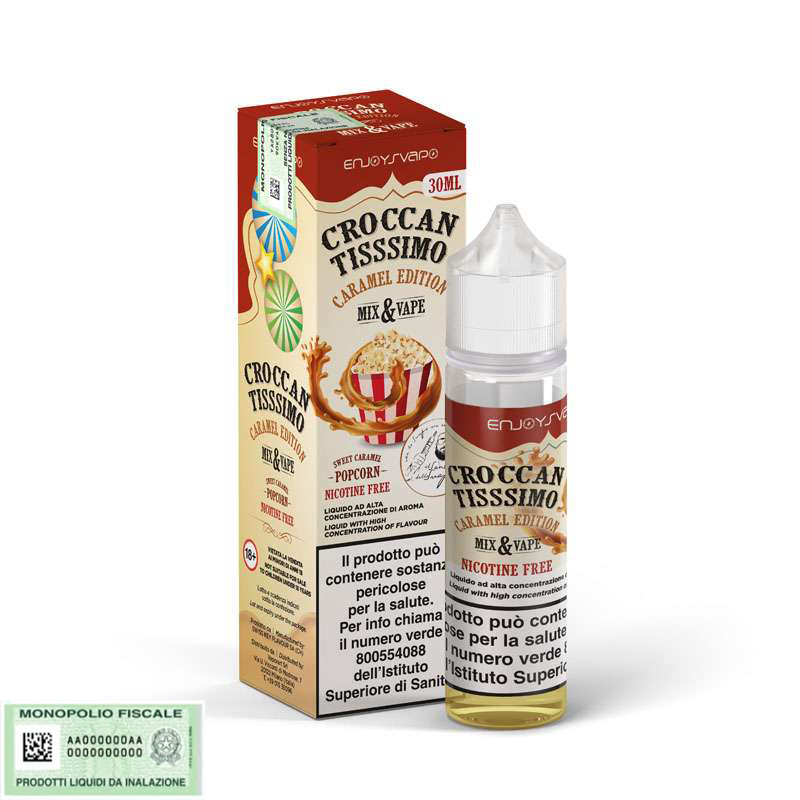 Il Croccantissimo Caramel by Il Santone dello Svapo di EnjoySvapo, prodotto da Vaporart, è un liquido mix and vape da 30ml ad alta concentrazione di aroma che combina il sapore del pop corn con note ricche di burro e caramello.