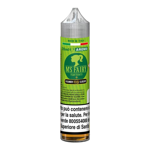 Fashion Vape Eliquid Ms Fairy è un aroma shot da 20ml per sigaretta elettronica dal carattere tabaccoso, che combina le note del tabacco con quelle della pera.