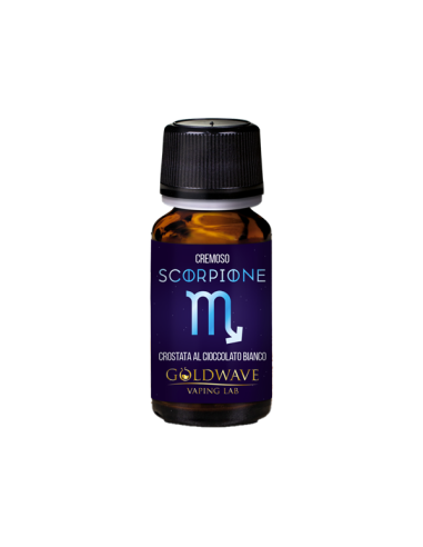 Lo Scorpione della linea Zodiac di Goldwave è un aroma concentrato da 10ml, che combina i gusti di pasta frolla e cioccolato bianco.