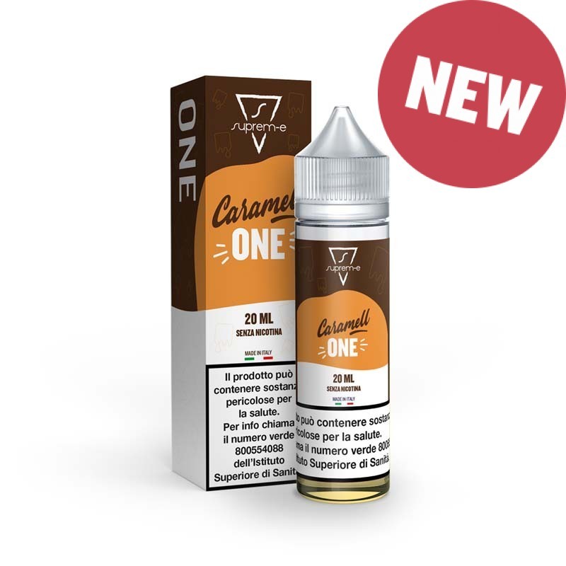 Caramellone liquido shot mix 20ml della linea One di Suprem-e al gusto di Caramello Salato, Crema, Vaniglia e Noce di Macadamia.