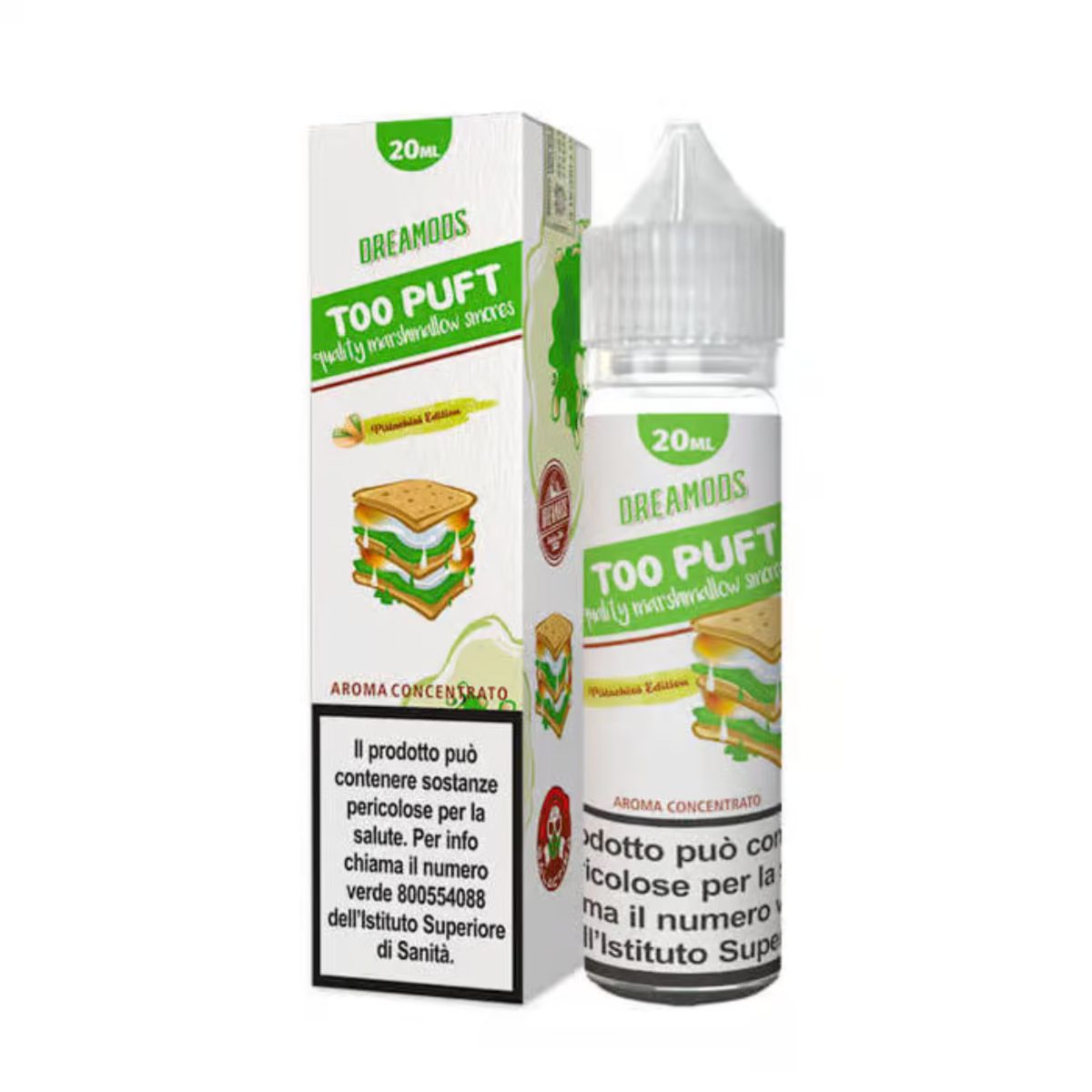 La Too Puft Pistacchio Edition, in versione aroma shot series da 20ml, è prodotta da Galactika e Dreamods, basandosi sulla ricetta originale Food Fighter Juice. Questo aroma combina i sapori di Graham Cracker, marshmallow e pistacchio, offrendo un profilo gustativo cremoso e avvolgente.