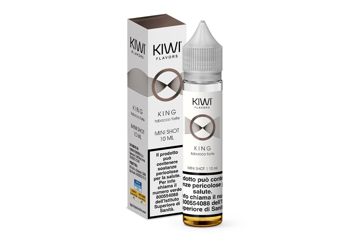 King di Kiwi Flavors è un aroma concentrato in formato mini shot da 10ml, caratterizzato da una combinazione di Tabacco Forte.
