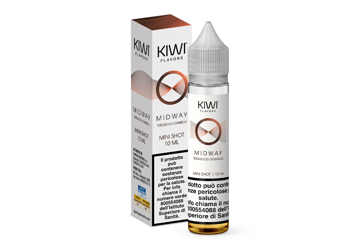 Midway mini shot 10ml di Kiwi Flavors è un aroma concentrato al gusto di tabacco.