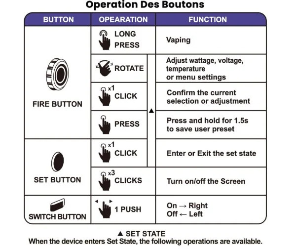 - Selezionare la modalità di svapo desiderata utilizzando il tasto Fire