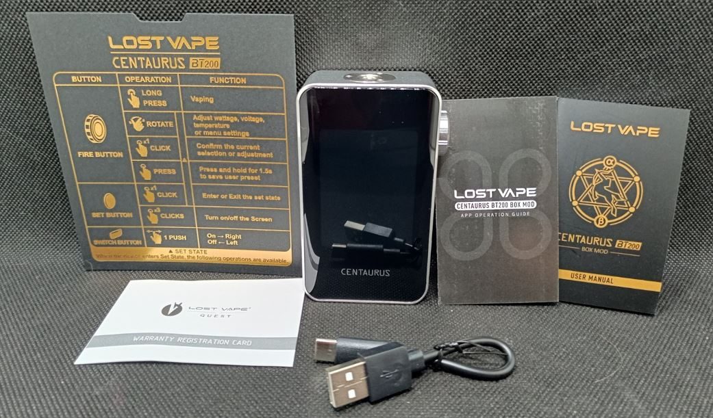 La box mod Centaurus BT200 di Lost Vape è una sigaretta elettronica dual battery 18650 (batterie non incluse) dotata di bluetooth che può essere controllata tramite App, consentendo di modificare i settaggi e scegliere un'ampia gamma di sfondi colorati.