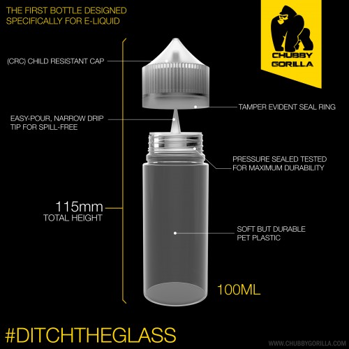 Bottiglietta Trasparente o Fume (trasparente con tappo Trasparente o fume con tappo nero) Chubby Gorilla Unicorn da 120ML in plastica con tappo