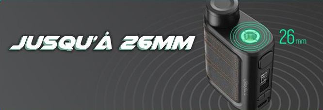La connessione standard 510 consente di abbinare la mod a una vasta gamma di atomizzatori fino a 26 mm di diametro, offrendo così una notevole versatilità. La necessità di una batteria 18650 esterna garantisce un'ottima autonomia, con la possibilità di utilizzare batterie di lunga durata. È importante utilizzare batterie IMR o INR per un utilizzo superiore ai 20 W.