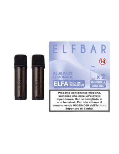 Le pod Blue Razz Lemonade sono cartucce precaricate compatibili con la sigaretta elettronica ELFA di Elf Bar. Ogni pod contiene 2 ml di liquido con sali di nicotina a una concentrazione di 20 mg/ml, offrendo un sapore fresco di limone e mirtillo.