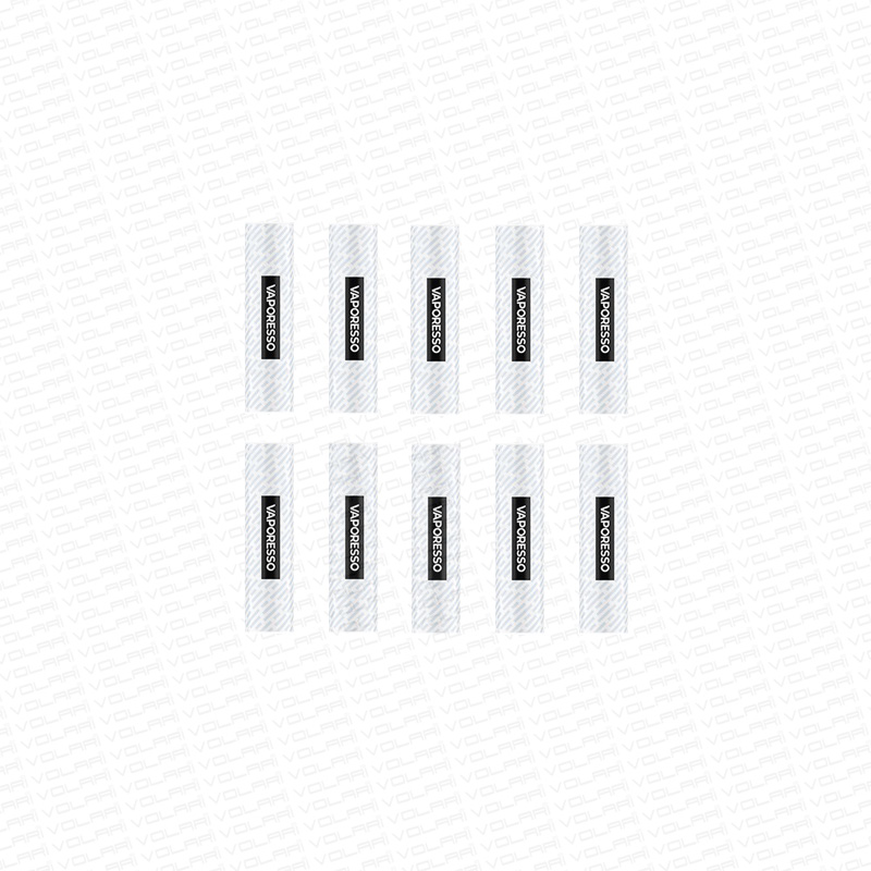 Filtri per sigaretta elettronica kit Coss Vaporesso: realizzati in cotone. Confezione da 10 pezzi. Adatti alle Pod cartucce con filtri Coss di Vaporesso.