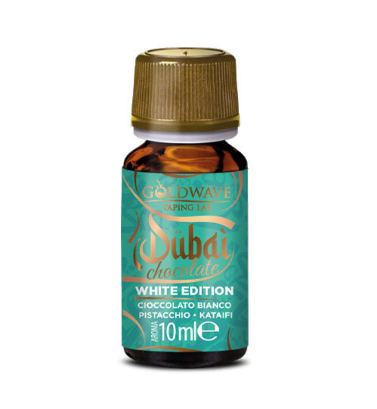 White Edition Dubai è un aroma concentrato per sigaretta elettronica da 10ml, prodotto da Goldwave, con gusto di Cioccolato bianco, Pistacchio e Pasta Kataifi