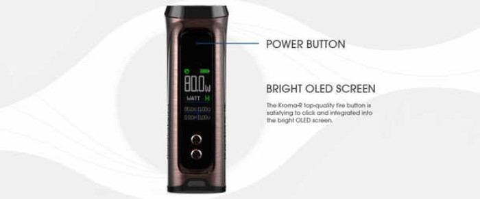 Innokin Kroma-R solo batteria ha un design ergonomico realizzato in lega di zinco. Ha uno schermo OLED e una batteria 18650 sostituibile. Con una potenza massima di 80W. Perfetto per il tiro di guancia (con le Z coil) e per il tiro di polmone (con le Ajax coil).