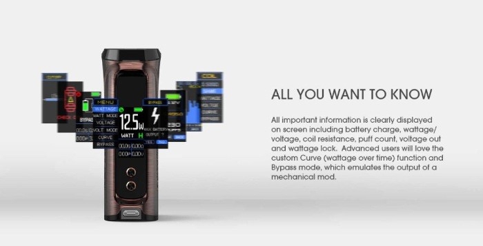 Modalità di lavoro: VW, VV, Modalità di gusto (Soft, Norm, Boost), Curva personalizzata, Bypass
