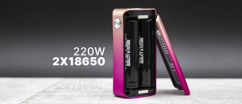 Si raccomanda l'utilizzo di un caricabatterie esterno per una manutenzione ottimale delle batterie e della box mod. Le batterie 18650 sono necessarie per il funzionamento e devono essere acquistate separatamente.