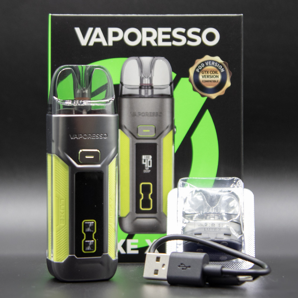 Il kit Luxe X Pro di Vaporesso si presenta come un dispositivo pod mod che combina elementi di design e funzionalità orientati alla facilità d'uso. Questo kit è caratterizzato da una struttura compatta e materiali di qualità, con un corpo realizzato in policarbonato e zinco, che conferiscono al dispositivo una finitura liscia e resistente all'usura.