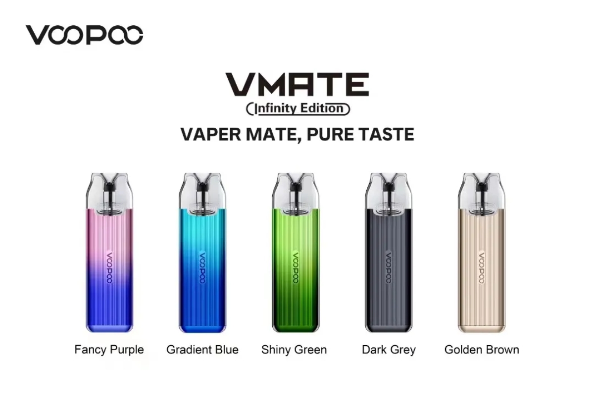 Voopoo Vmate Infinity Edition è un kit pod facile, con batteria integrata da 900 mAh e capacità di 3 ml. Si tratta di una sigaretta elettronica MTL (tiro di guancia) con design elegante e futuristico. La potenza massima è di 17W, con flusso d'aria regolabile e tecnologia ITO per una vaporizzazione ottimale.
