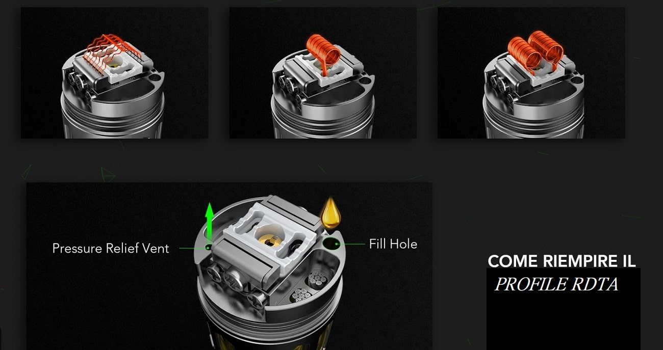Il Wotofo Profile RDTA è la versione RDTA dell'ormai famosissimo Profile RDA, con trasferimento del liquido migliorato dal basso verso l'alto utilizzando 4 stoppini in acciaio inossidabile, può essere utilizzato con una coil mesh singola o una coil di filo normale(anche in dual coil).